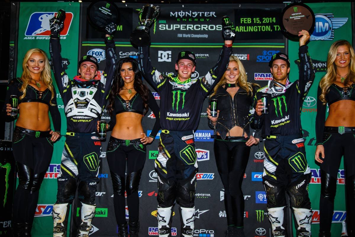 ARLINGTON, Texas (February 15, 2014) – In front of 54,421 fans inside AT&T Stadium, Team Yoshimura Suzuki’s James Stewart won his second straight Monster Energy AMA Supercross, an FIM World Championship, race with a dominant performance in the 450SX Class for the 47th win of his career. In the opening race of the Eastern Regional 250SX Class Championship, Monster Energy/Pro Circuit/Kawasaki’s Adam Cianciarulo captured his first career victory in his Monster Energy Supercross debut.